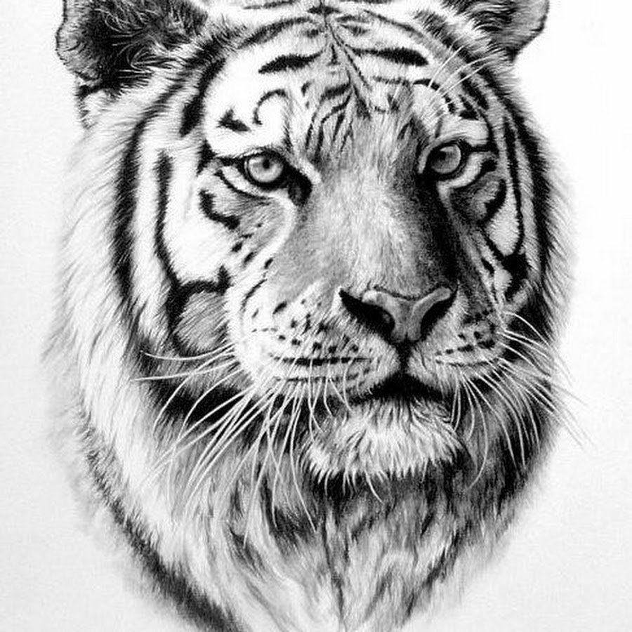![Морда тигра рисунок карандашом]()