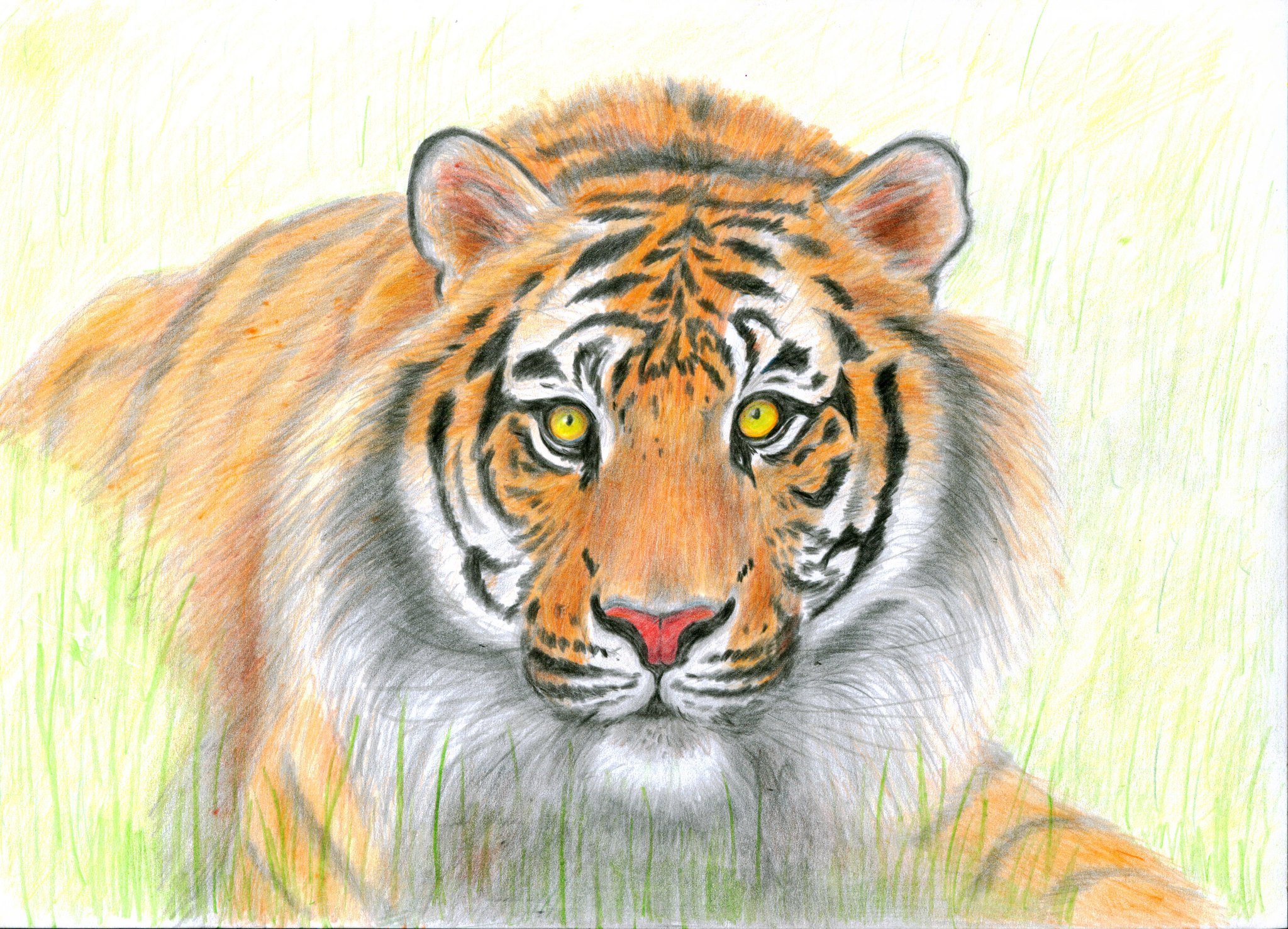 Тигр цветными карандашами