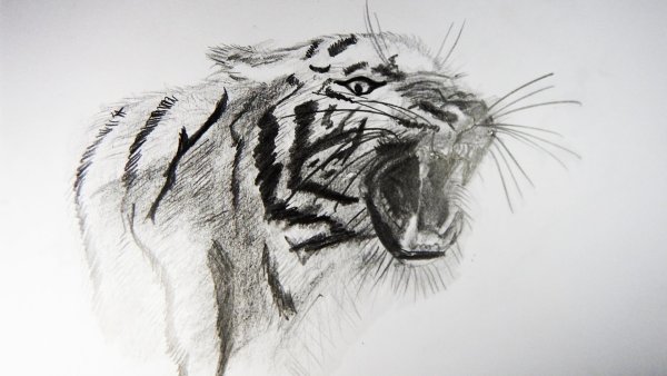 ![Набросок тигра карандашом]()