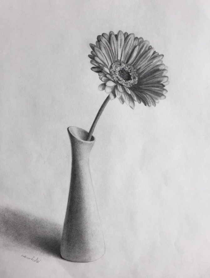 ![Натюрморт ваза с цветами карандашом]()