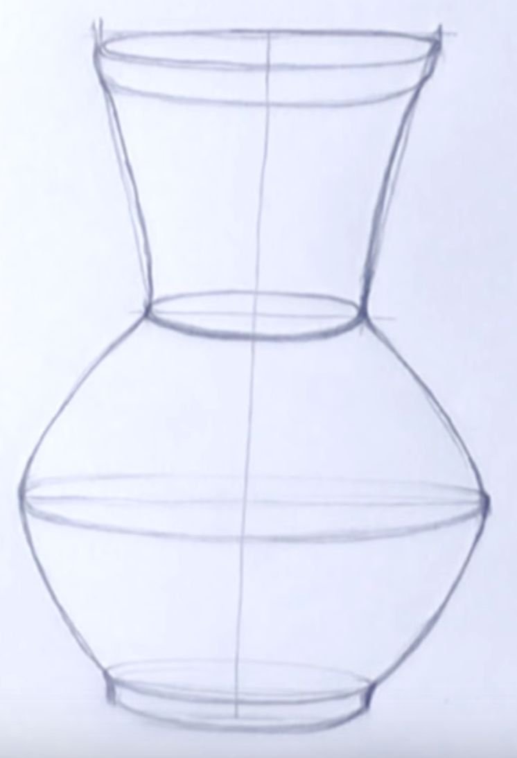 ![Пошаговое рисование вазы]()