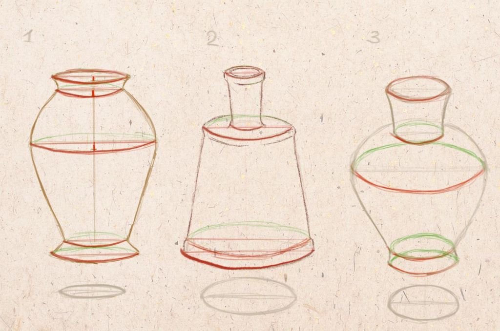 ![Этапы рисования вазы]()