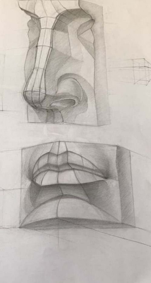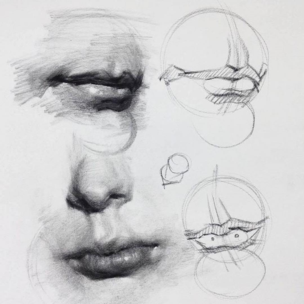 ![Части лица карандашом]()
