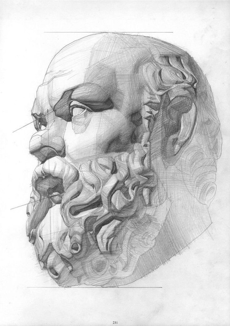 ![Академический рисунок гипсовой головы Сократа]()