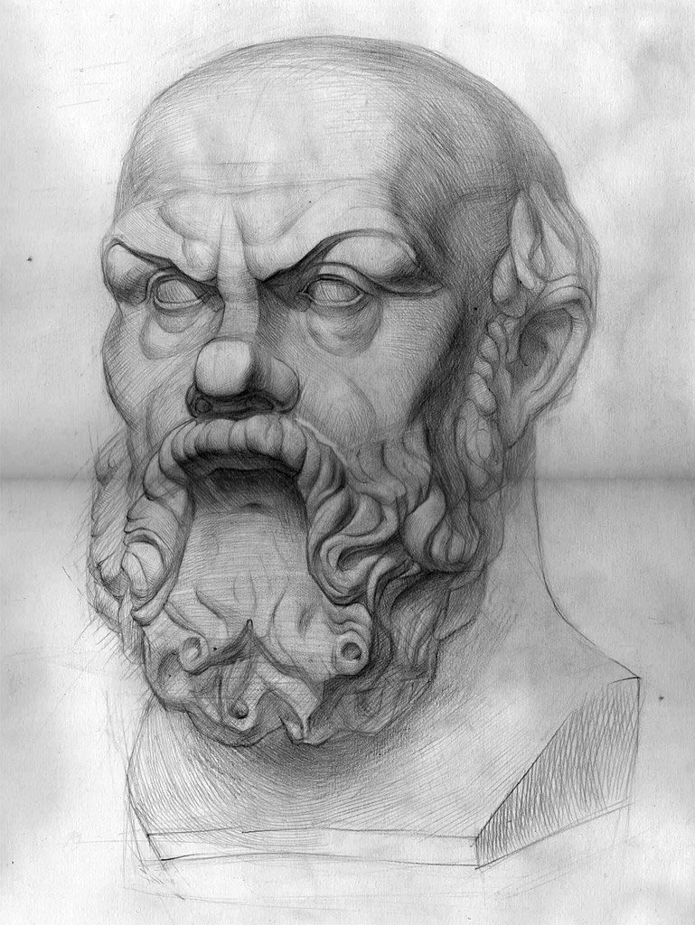 Академический рисунок гипсовой головы Сократа