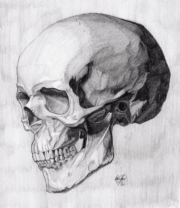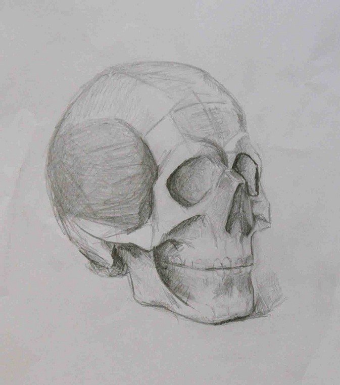 ![Череп карандашом три четверти]()