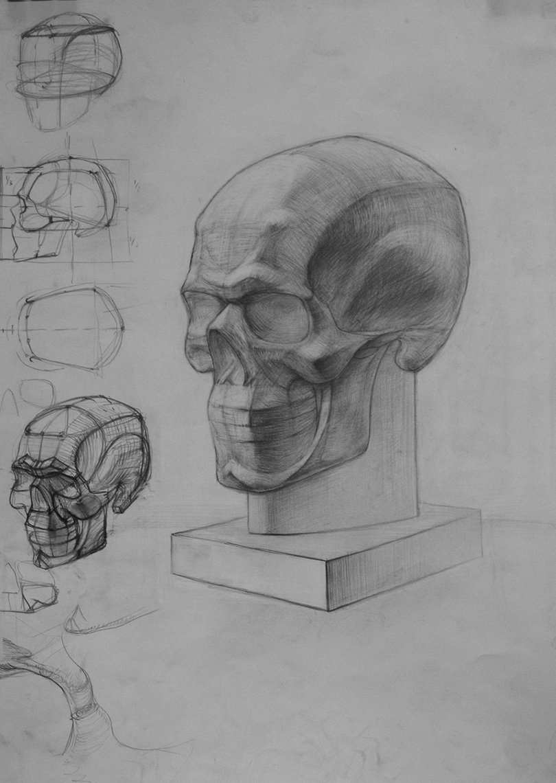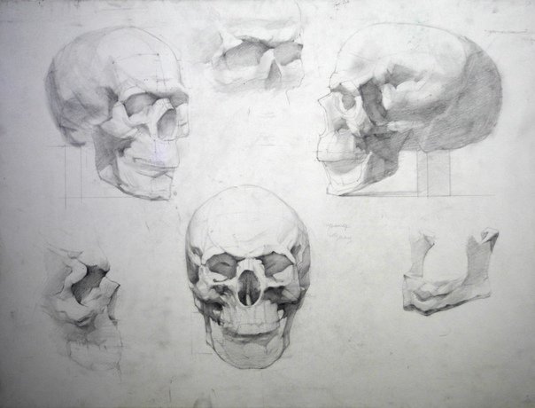 ![Академический рисунок черепа Академия художеств]()