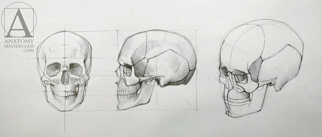 ![Академическое рисование черепа]()