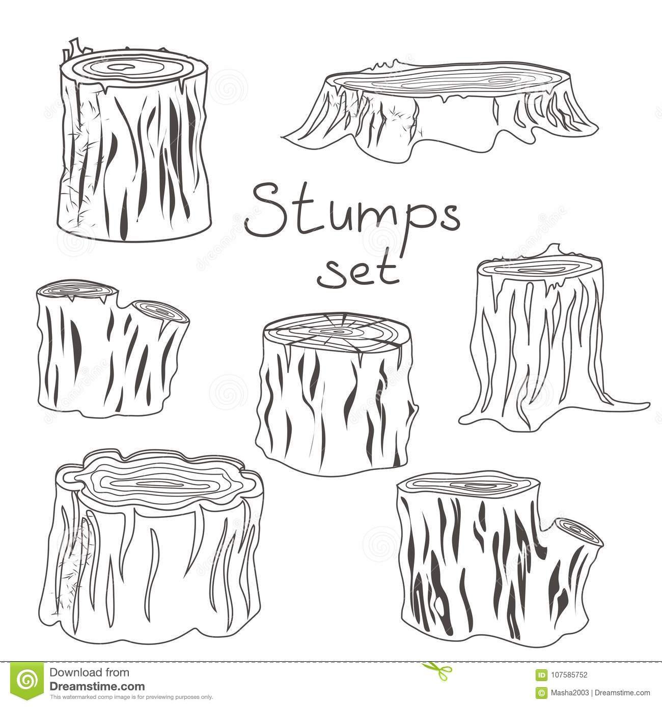 ![Срубленный пень иллюстрация]()