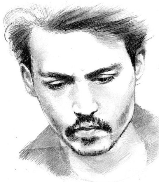 ![Портрет Джонни Деппа карандашом]()