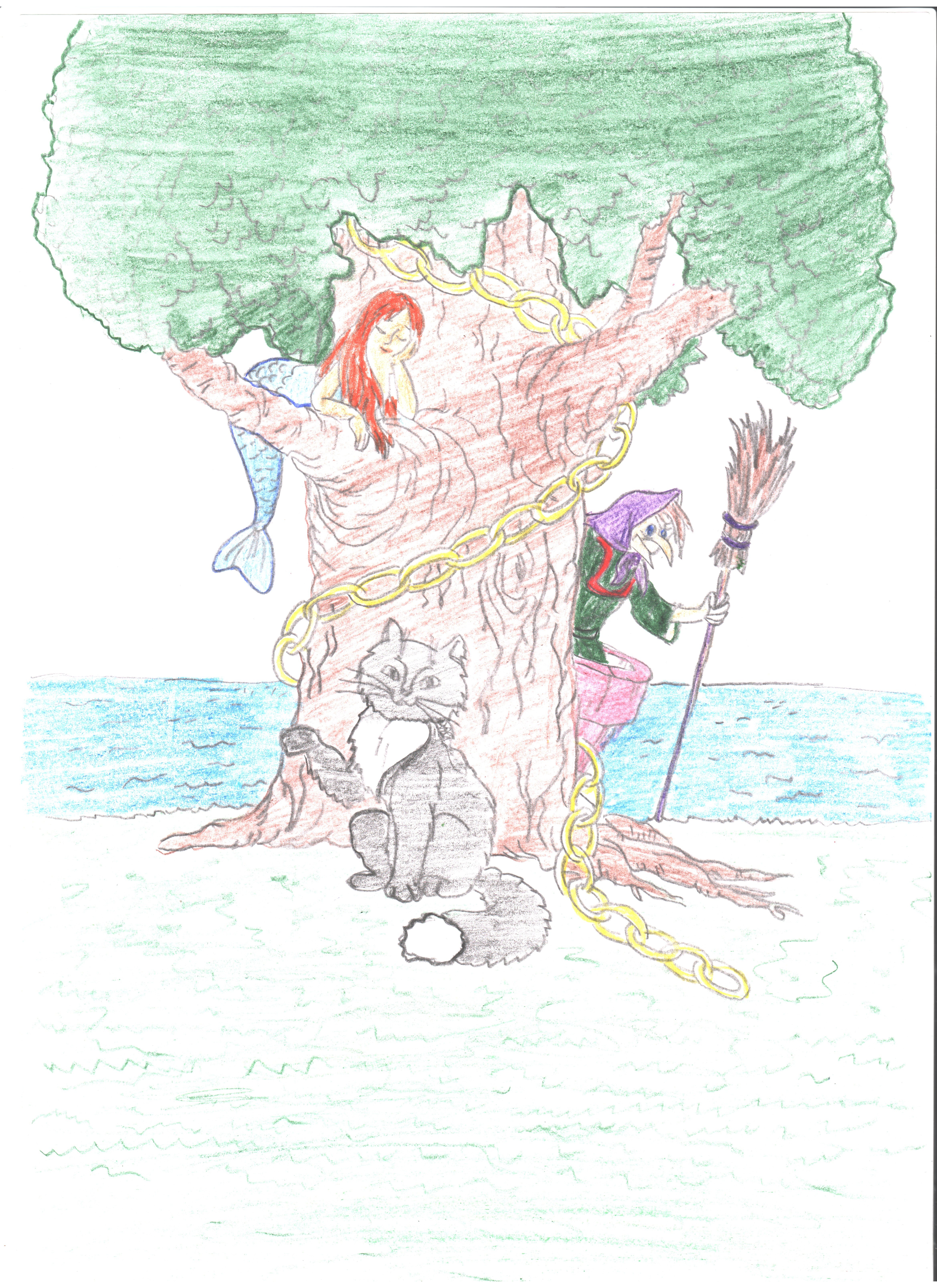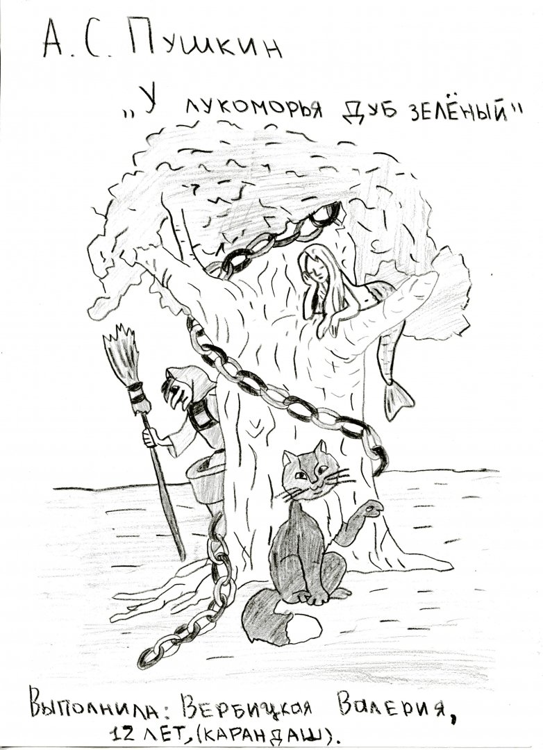 ![У Лукоморья дуб зеленый рисунок для детей]()