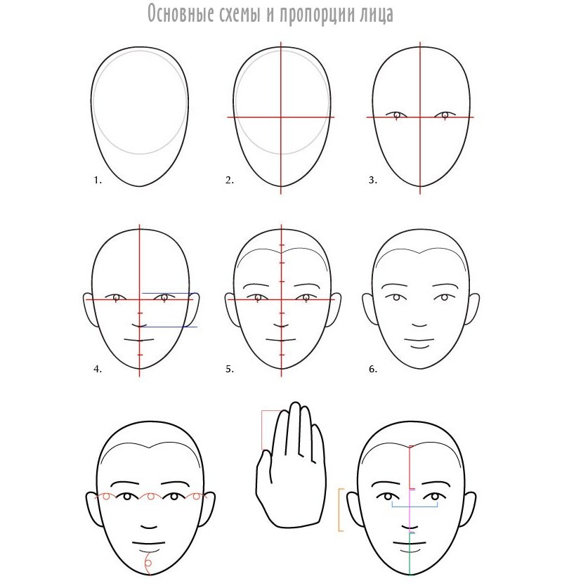 ![Пропорции лица для рисования портрета]()