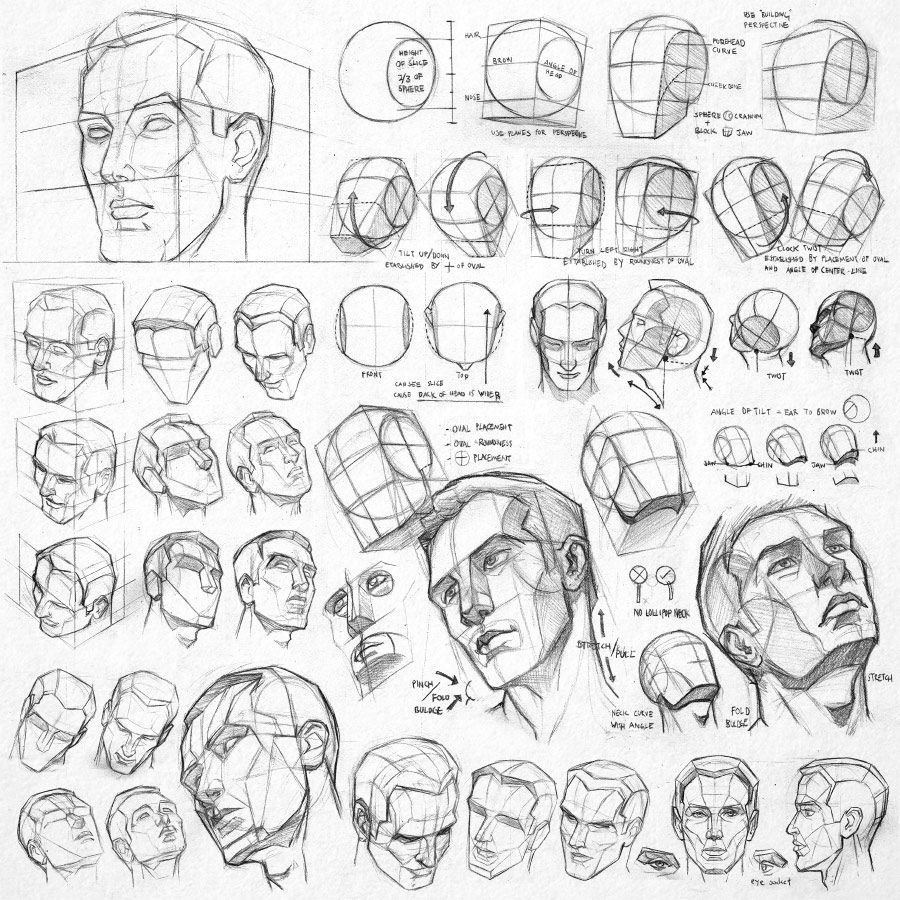 ![Метод Эндрю Лумиса рисование головы]()