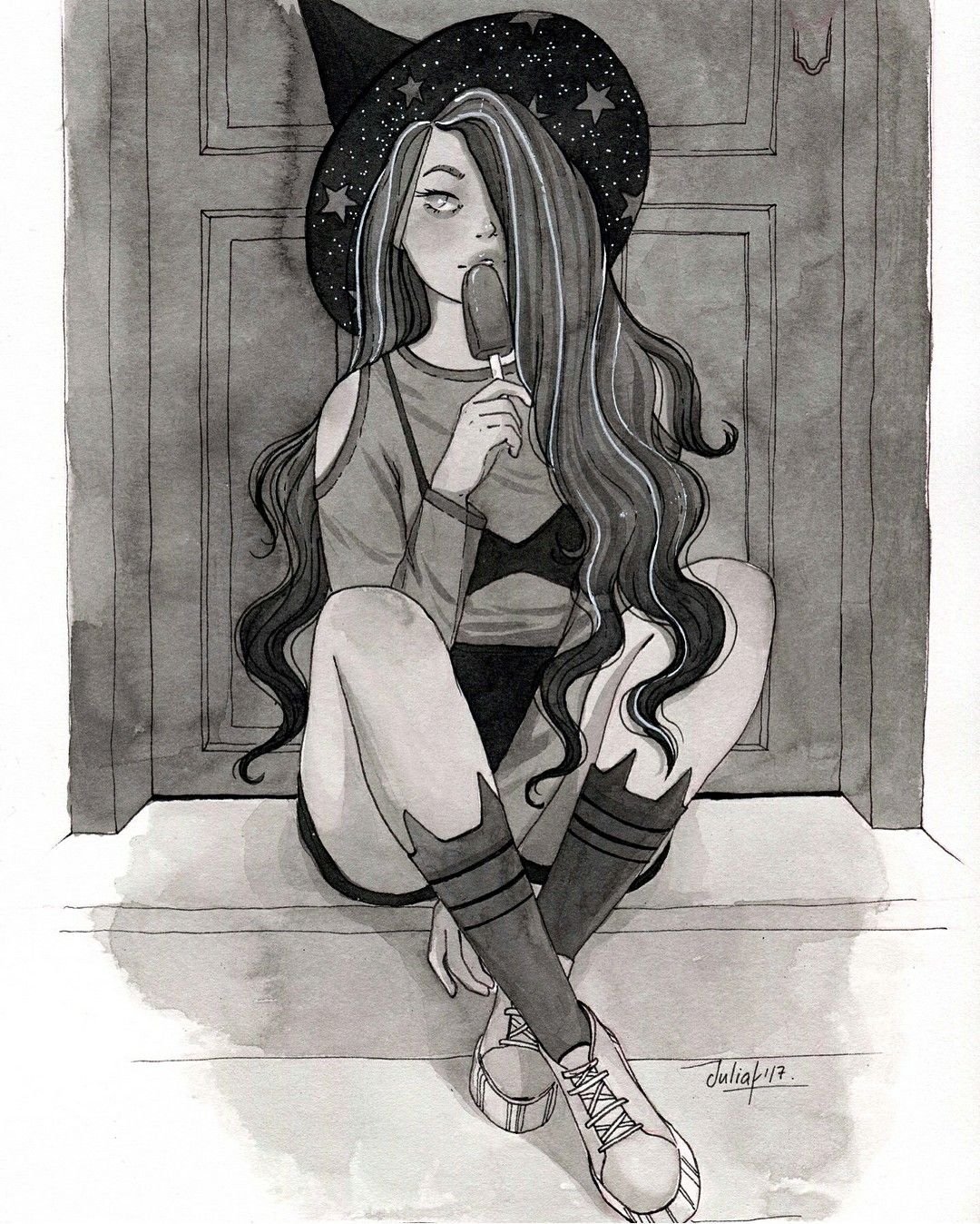 ![Ведьмочка карандашом]()