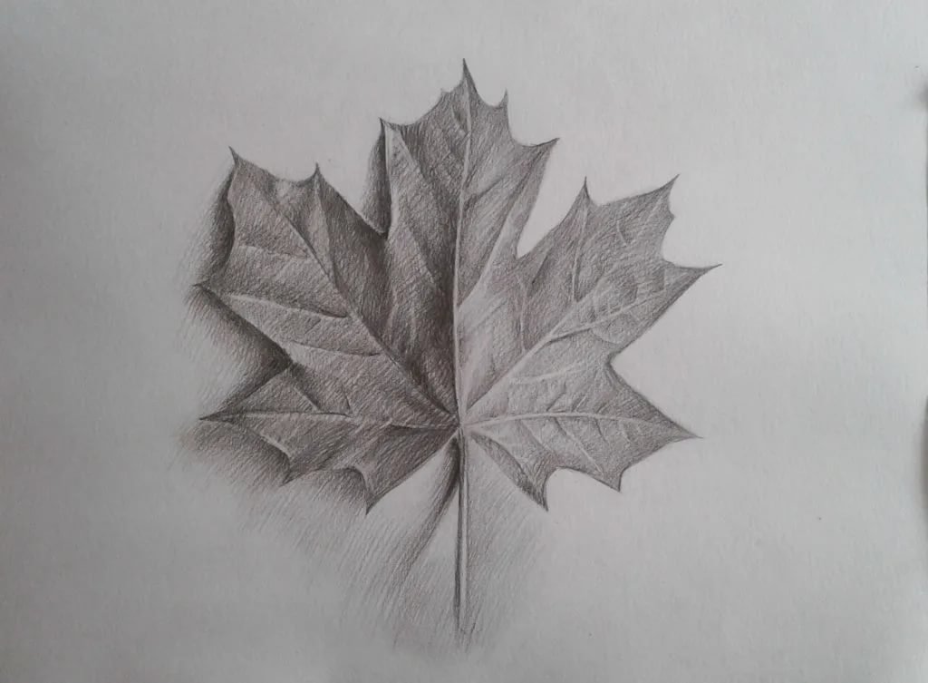 Лист клёна рисунок карандашом поэтапно