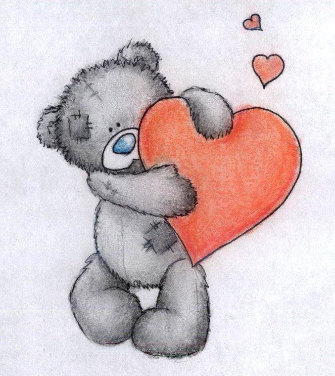 ![Мишка с сердечком нарисова]()