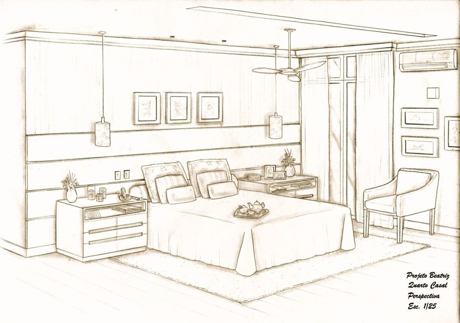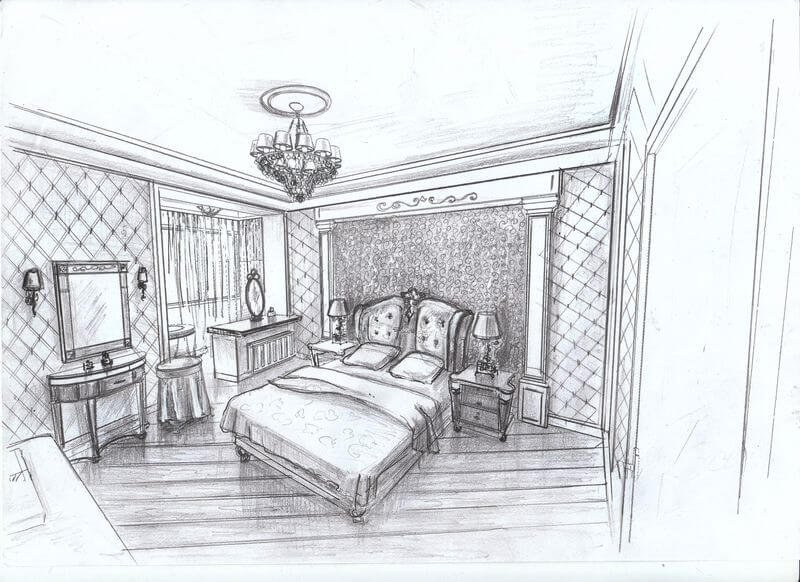 ![Спальня карандашом]()