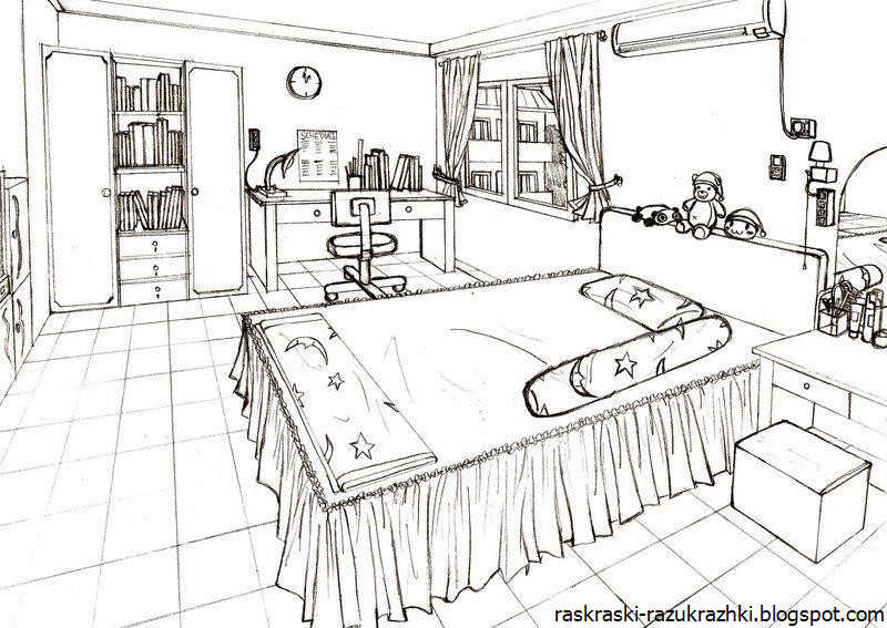 Рисунок комнаты для срисовки