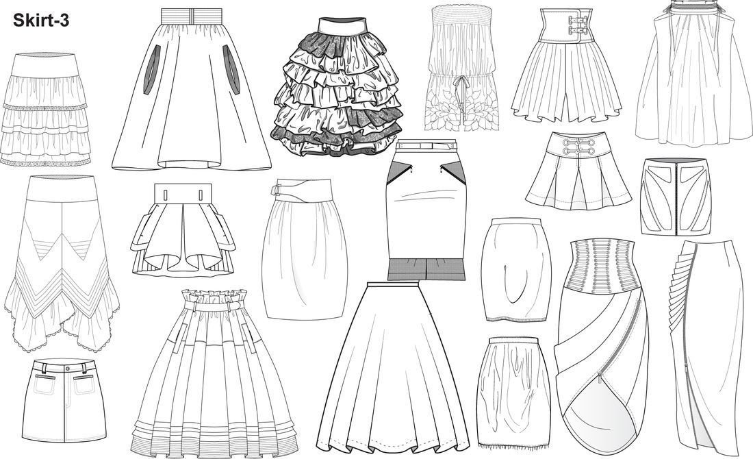 ![Модели юбок зарисовка]()
