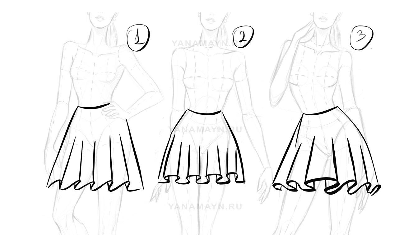 Как нарисовать юбку со складками