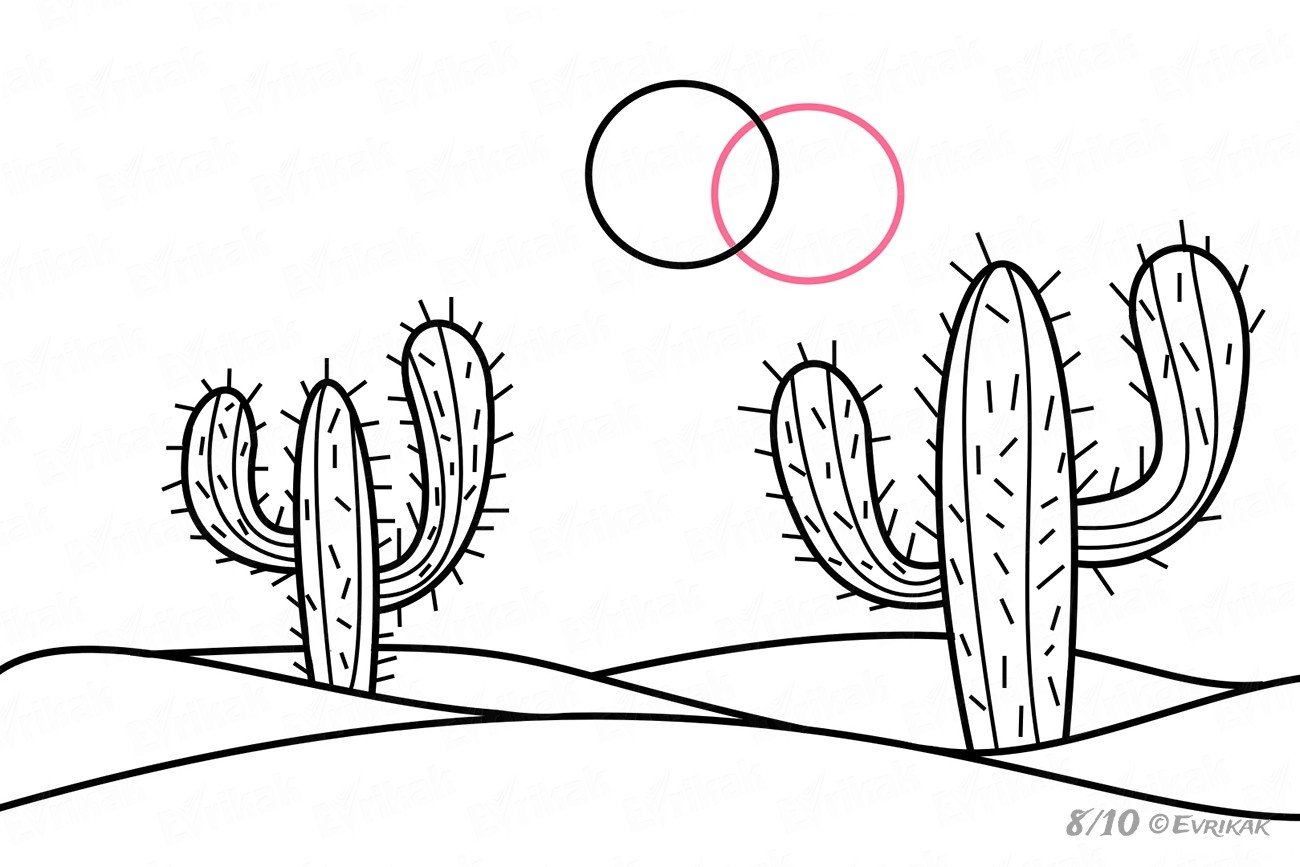 Рисование кактусы в пустыне