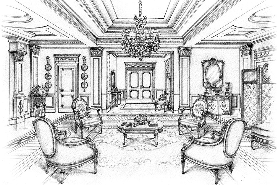 Эскиз интерьера в стиле классицизм