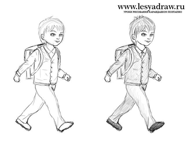 ![Мальчик рисунок карандашом в полный рост]()