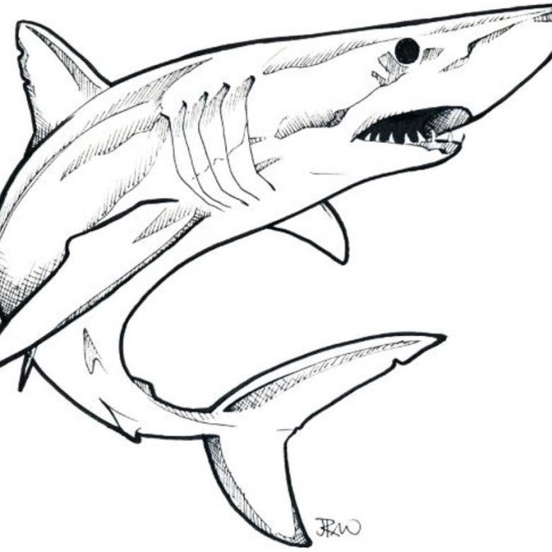 ![Белая акула раскраска]()