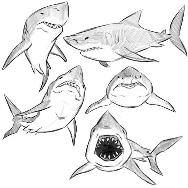![Скетч легкий акулы]()