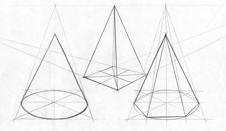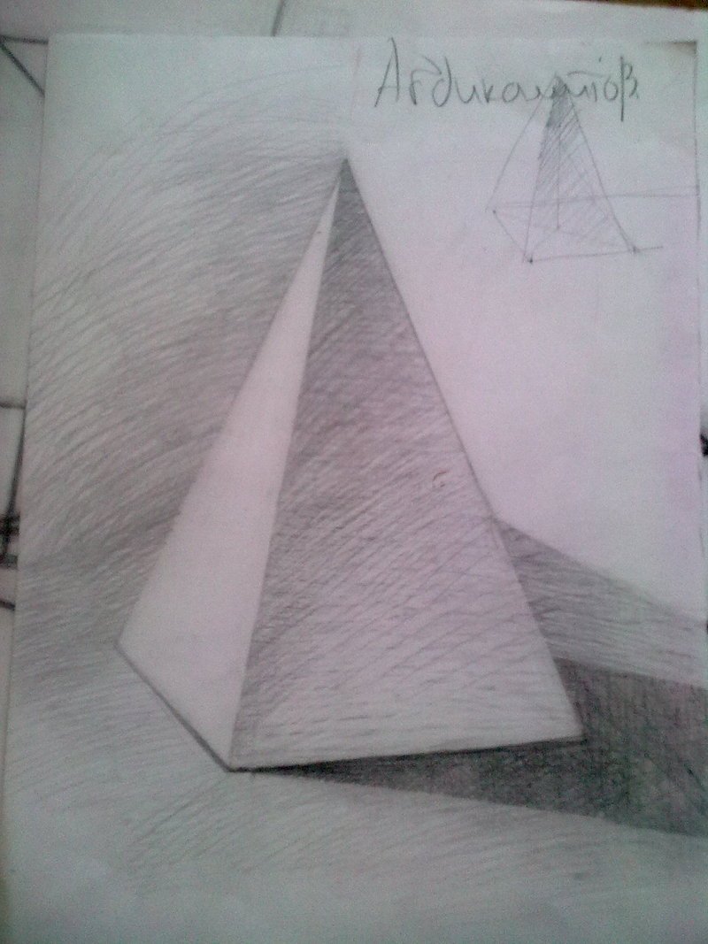 ![Штриховка пирамиды карандашом]()