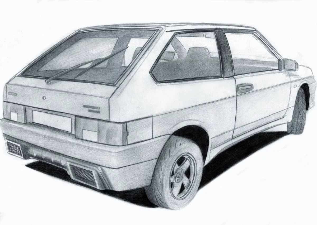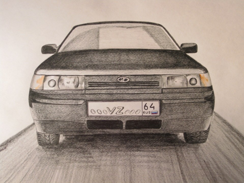 ВАЗ 2108 рисунок карандашом спереди спереди