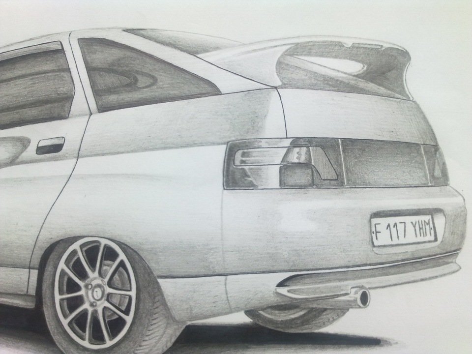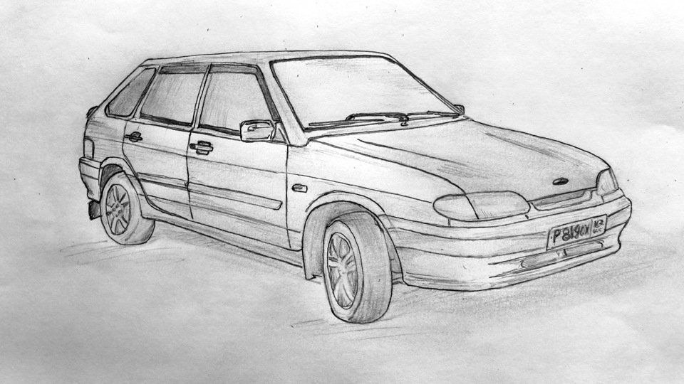 ![ВАЗ 2114 рисунок карандашом спереди]()