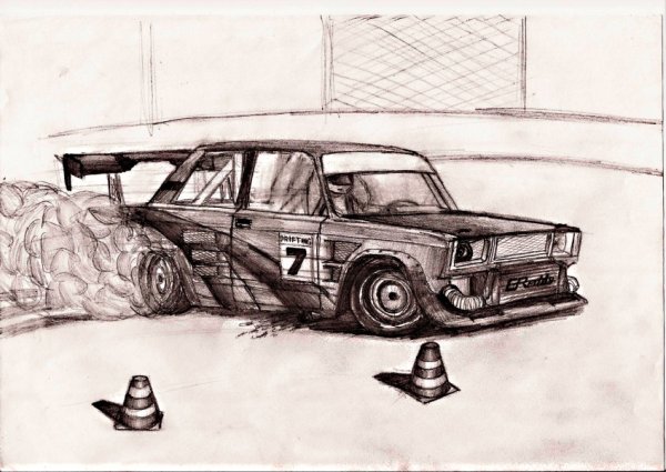 ![ВАЗ 2107 рисунок карандашом сбоку]()