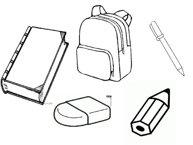 ![Ручка, карандаш линейка ластик раскраска для детей]()