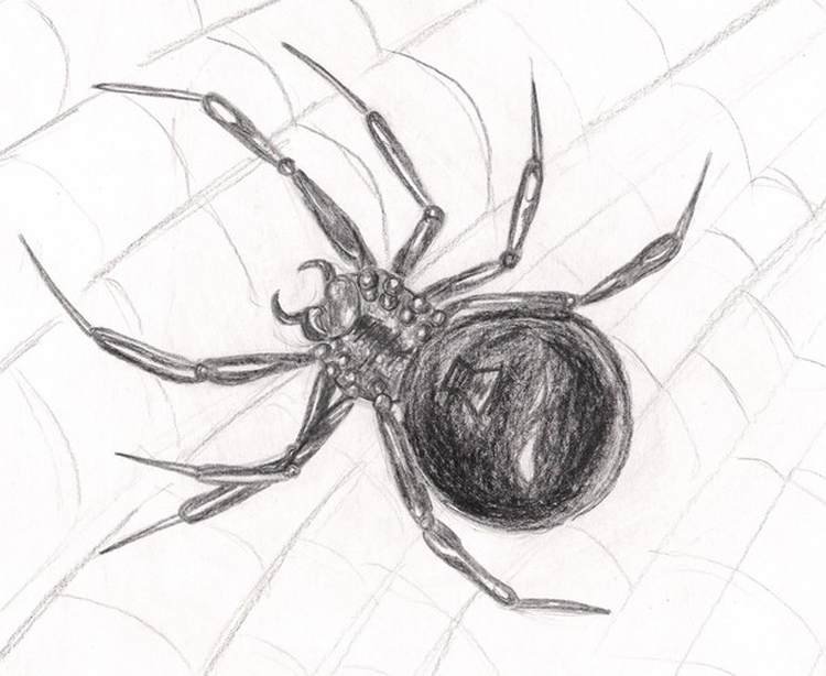 ![Паук Каракурт карандашом]()