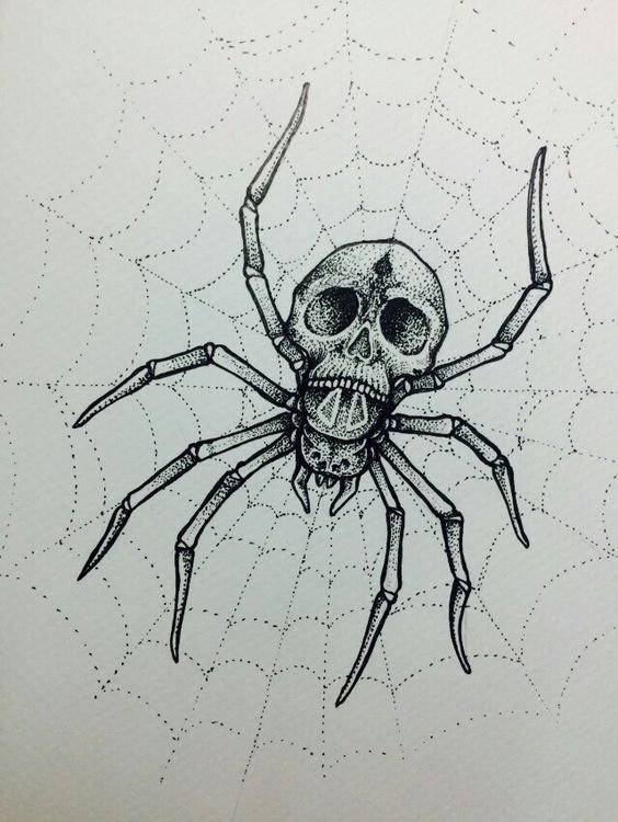 ![Паук рисунок карандашом для срисовки]()