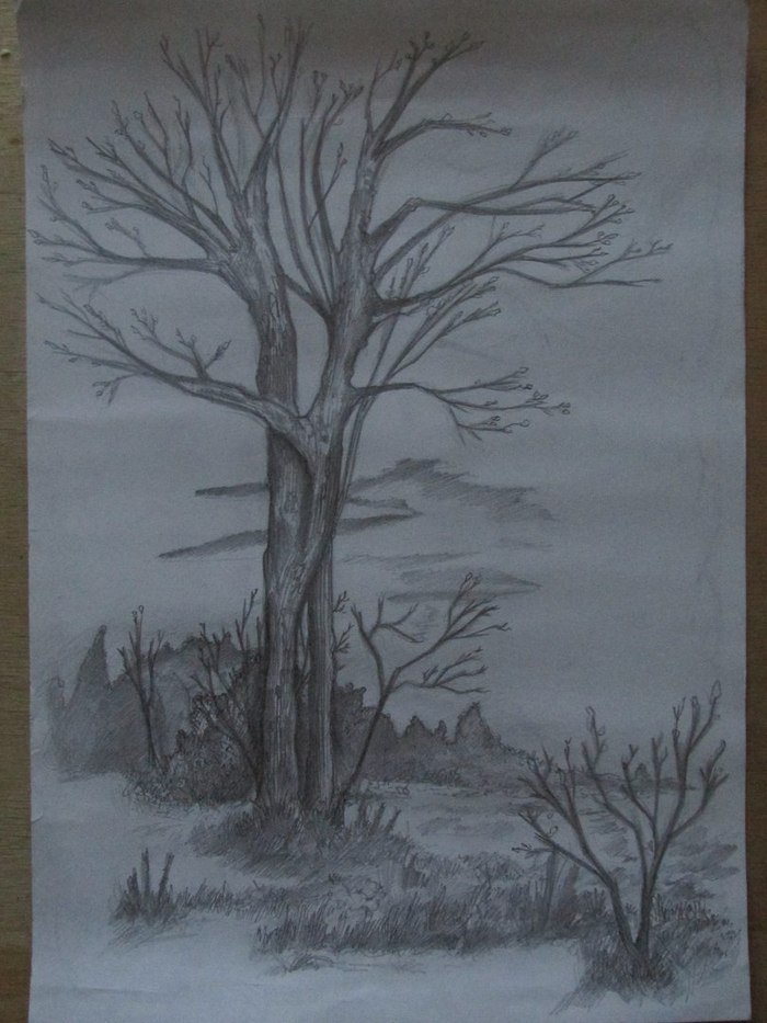 Весенний пейзаж карандашом