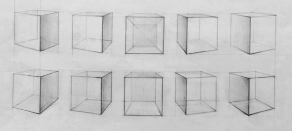 ![Куб в перспективе карандашом]()