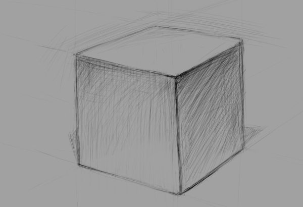 Куб штриховка карандашом