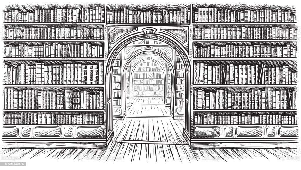 ![Книжный стеллаж набросок]()