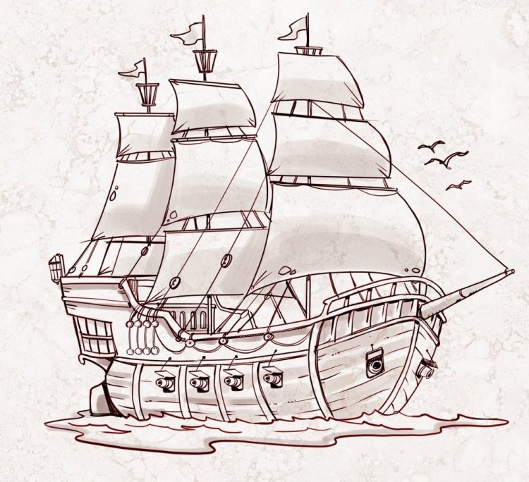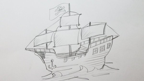 Рисунок корабля карандашом для срисовки
