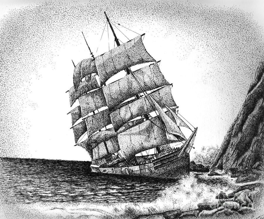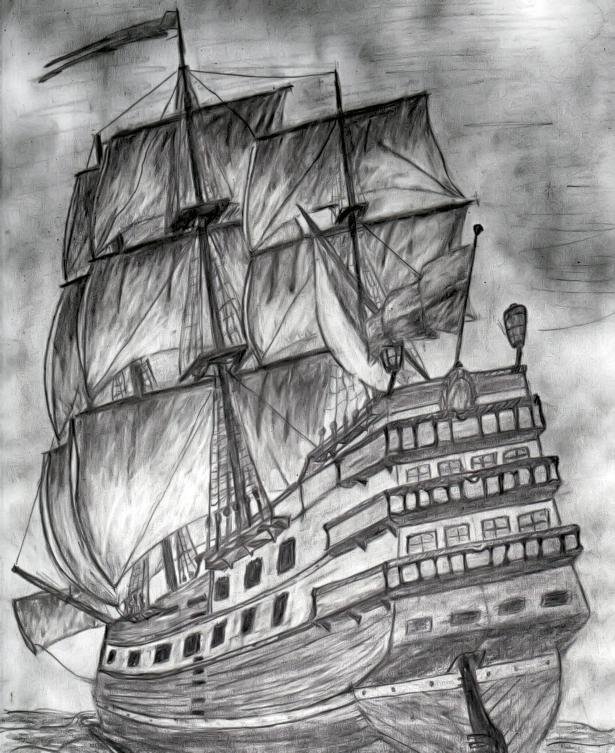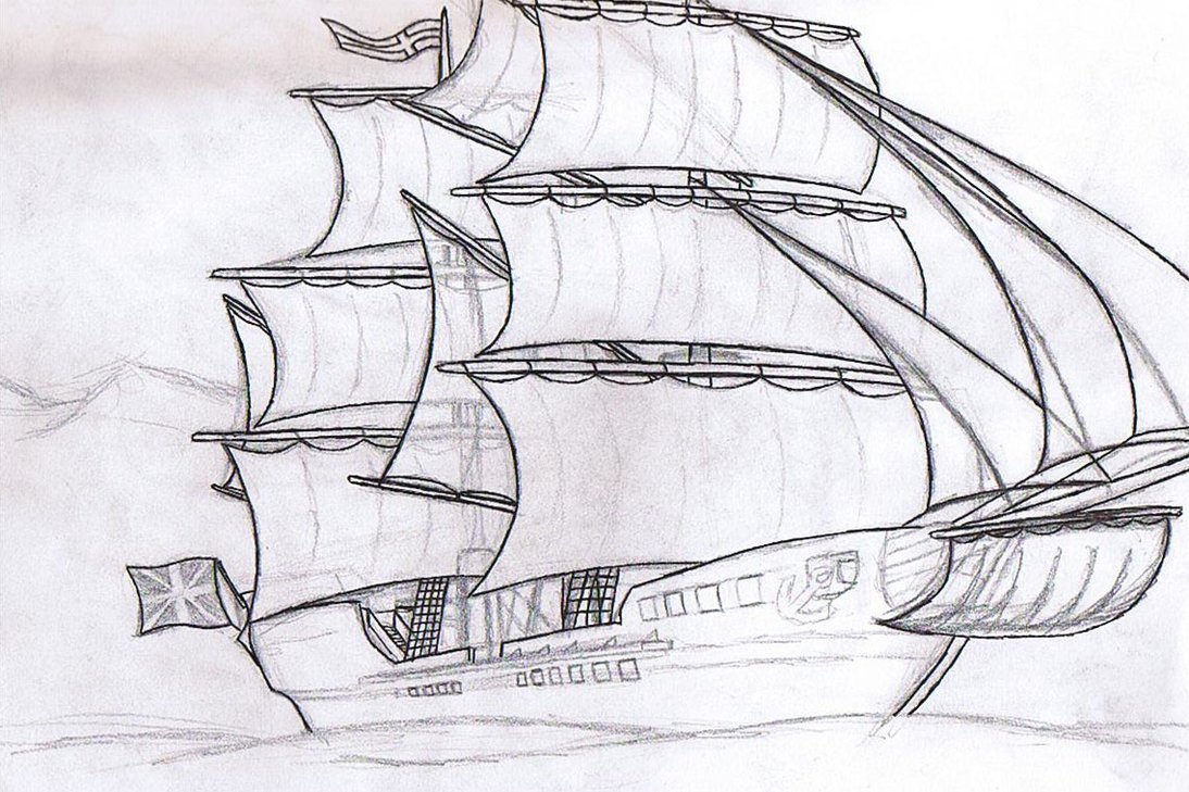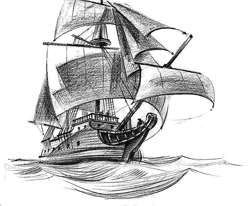 Парусный корабль карандашом
