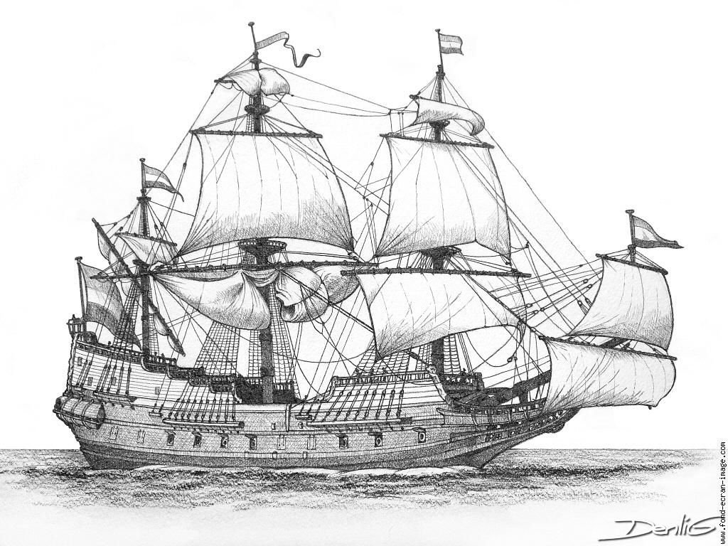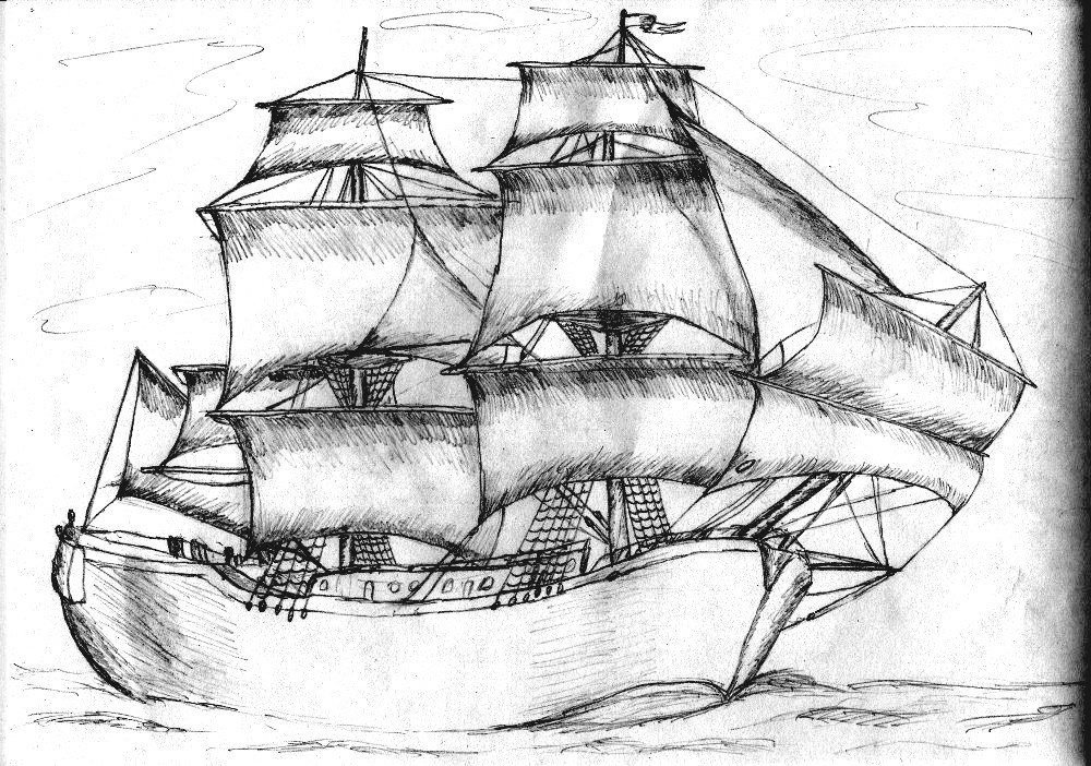 ![Парусный корабль карандашом]()