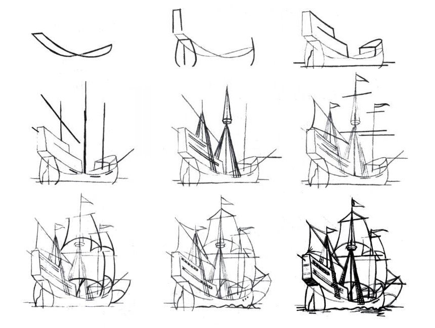 Рисунок корабля пошагово