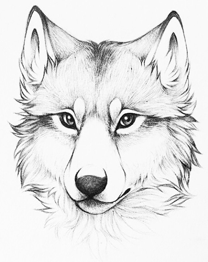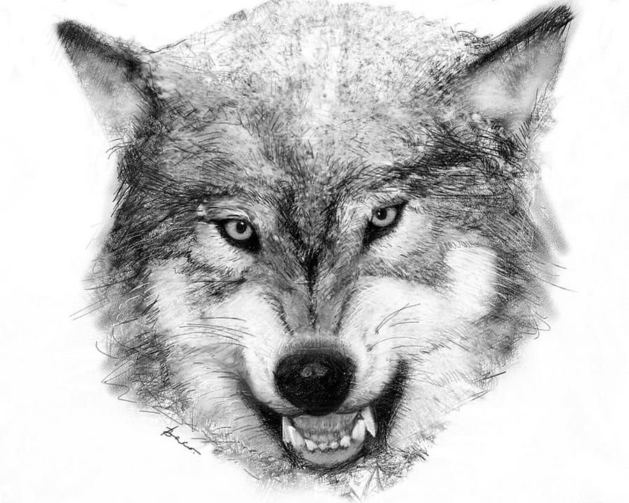 ![Лицо волка карандашом]()