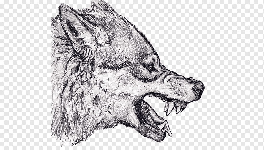 ![Голова волка сбоку эскиз]()