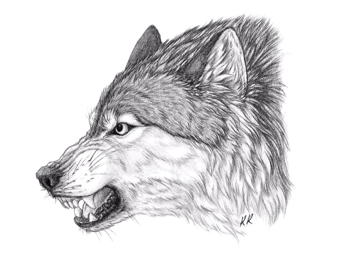 ![Волк морда карандашом сбоку]()