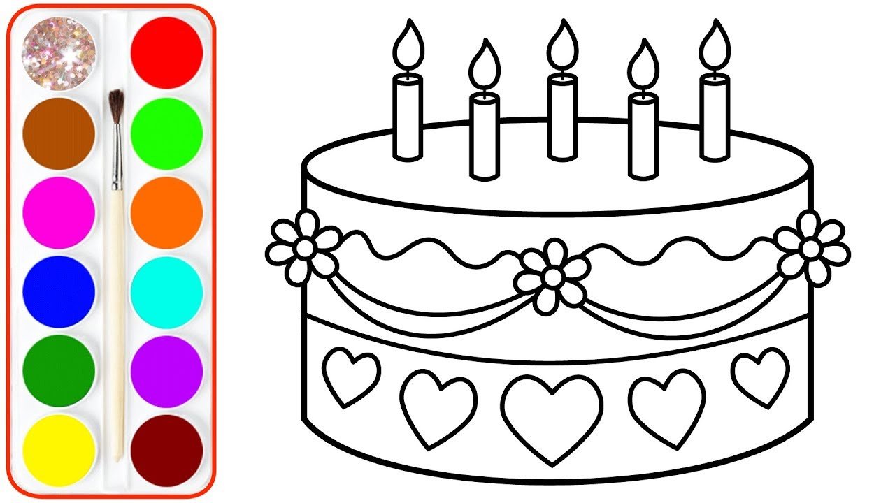![Торт раскраска для детей]()