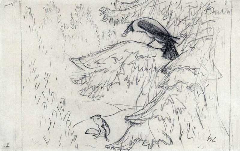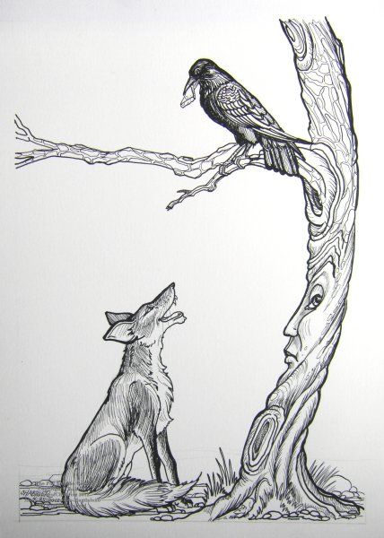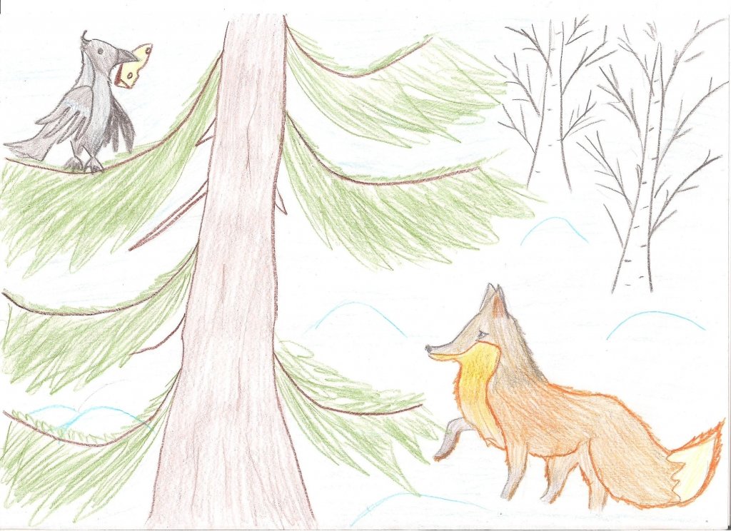 ![Иллюстрация к басне ворона и лисица карандашом]()