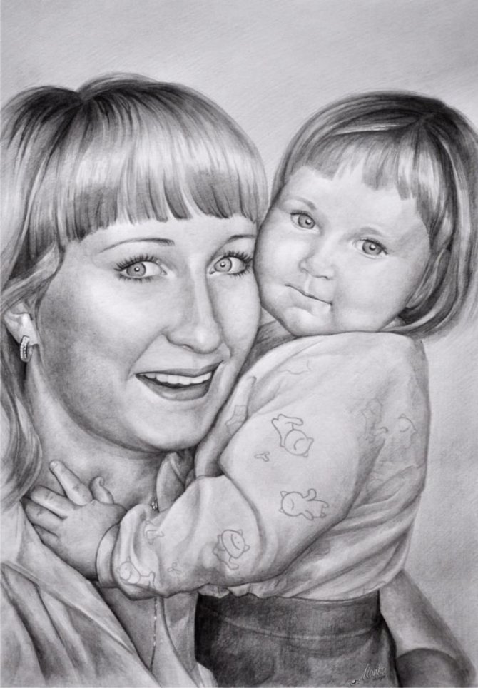 ![Мама и дочка рисунок карандашом]()